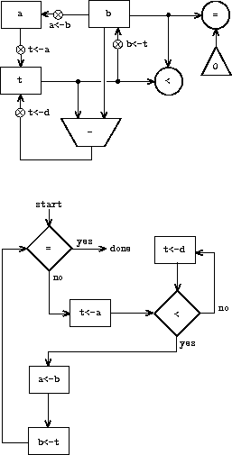 in the GCD controller definition is replaced by a sequence of instructions that contains a loop, as shown in figure 5.6.