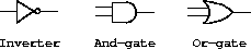 Our computational model of a circuit will be composed of objects that correspond to the elementary components from which the circuit is constructed. There are wires, which carry digital signals. A digital signal may at any moment have only one of two possible values, 0 and 1. There are also various types of digital function boxes, which connect wires carrying input signals to other output wires. Such boxes produce output signals computed from their input signals. The output signal is delayed by a time that depends on the type of the function box. For example, an inverter is a primitive function box that inverts its input. If the input signal to an inverter changes to 0, then one inverter-delay later the inverter will change its output signal to 1. If the input signal to an inverter changes to 1, then one inverter-delay later the inverter will change its output signal to 0. We draw an inverter symbolically as in figure 3.24. An and-gate, also shown in figure 3.24, is a primitive function box with two inputs and one output. It drives its output signal to a value that is the logical and of the inputs. That is, if both of its input signals become 1, then one and-gate-delay time later the and-gate will force its output signal to be 1; otherwise the output will be 0. An or-gate is a similar two-input primitive function box that drives its output signal to a value that is the logical or of the inputs. That is, the output will become 1 if at least one of the input signals is 1; otherwise the output will become 0.
