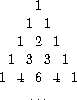 The numbers at the edge of the triangle are all 1, and each number inside the triangle is the sum of the two numbers above it.noteThe elements of Pascal's triangle are called the binomial coefficients, because the nth row consists of the coefficients of the terms in the expansion of (x + y)n. This pattern for computing the coefficients appeared in Blaise Pascal's 1653 seminal work on probability theory, Traité du triangle arithmétique. According to Knuth (1973), the same pattern appears in the Szu-yuen Yü-chien ("The Precious Mirror of the Four Elements"), published by the Chinese mathematician Chu Shih-chieh in 1303, in the works of the twelfth-century Persian poet and mathematician Omar Khayyam, and in the works of the twelfth-century Hindu mathematician Bháscara Áchárya. Write a procedure that computes elements of Pascal's triangle by means of a recursive process.